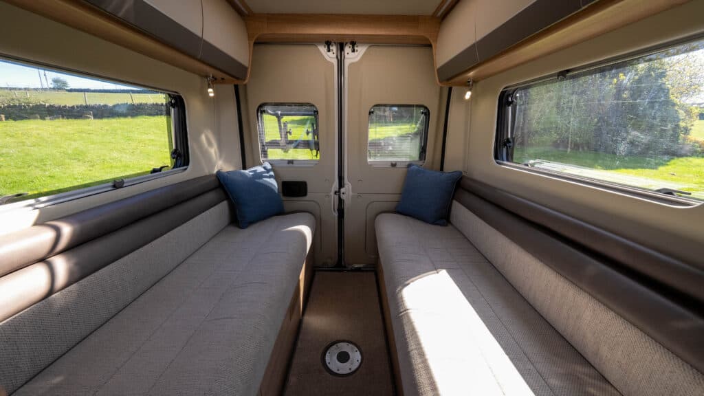 - Sleeping Versatility: At night, the rear lounge effortlessly converts into two fixed single beds, allowing for easy access in and out of the bed without disturbing your partner. Alternatively, it can be made into one enormous, luxurious double.