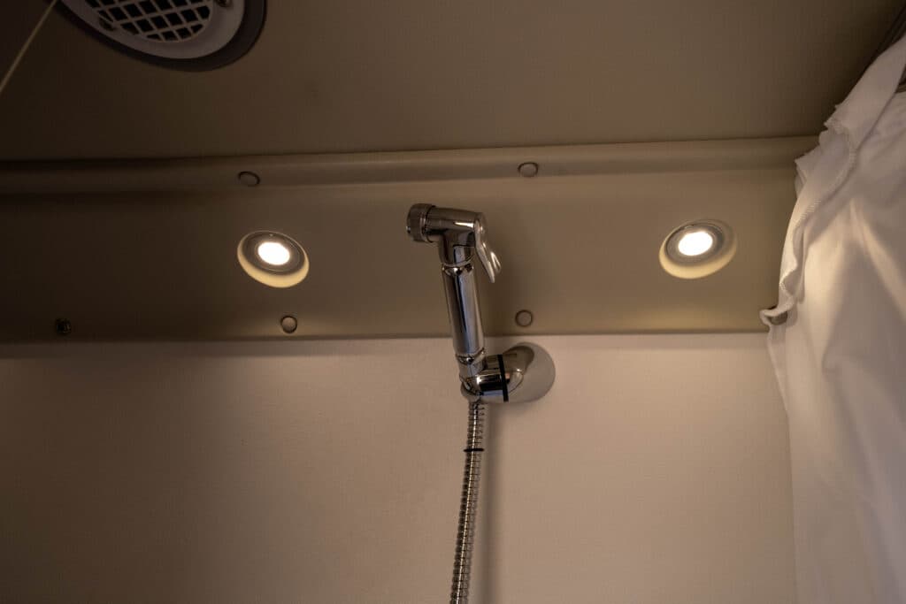 - Luxury Washroom: A clever, space-saving wet room featuring a vanity sink, toilet, and an integrated shower.
